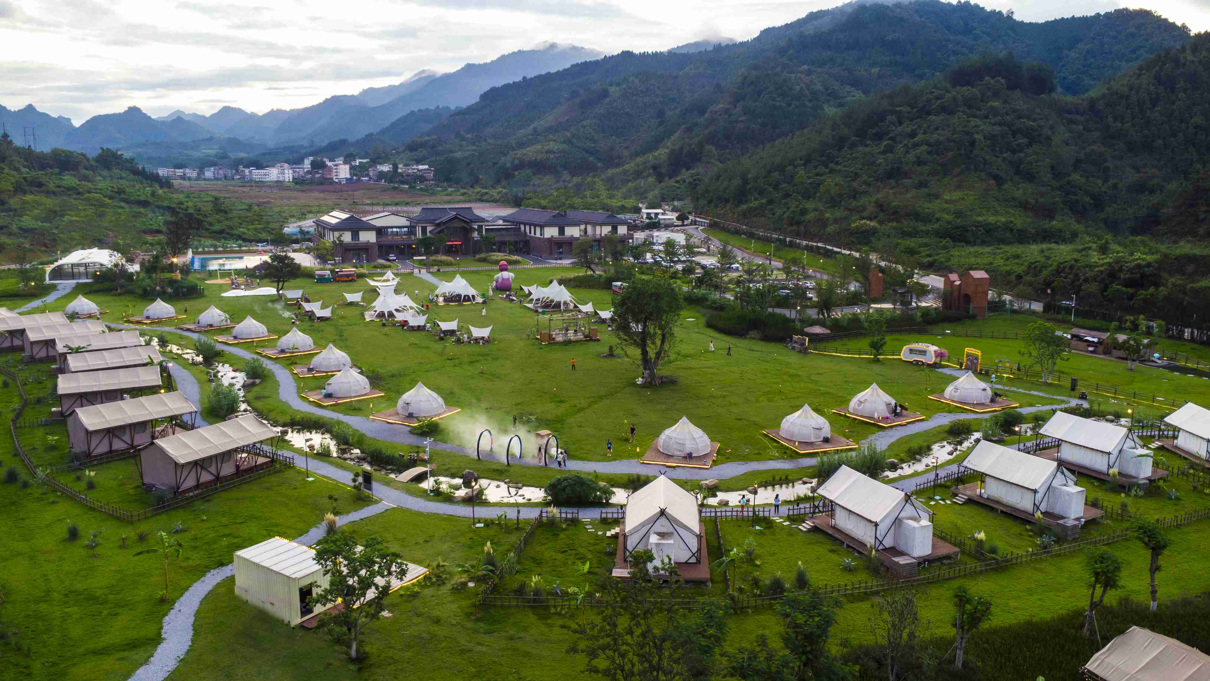 大王岭漂流露营地地处海拔900米,占地157亩,位于天然泉水漂流源头地,山环水绕,鲜氧四溢,非常适合久居城市的年轻人、职工、亲子家庭来此放松身心,释放自我。营地配有:山居系列5顶、田园系列9顶、桫椤系列4顶,船屋17帐篷内配备了一次性洗浴用品、拖鞋等用具,实现拎包入住式露营。同时还为入住的客人配置了私人管家,为客人提供细致、周到的服务。